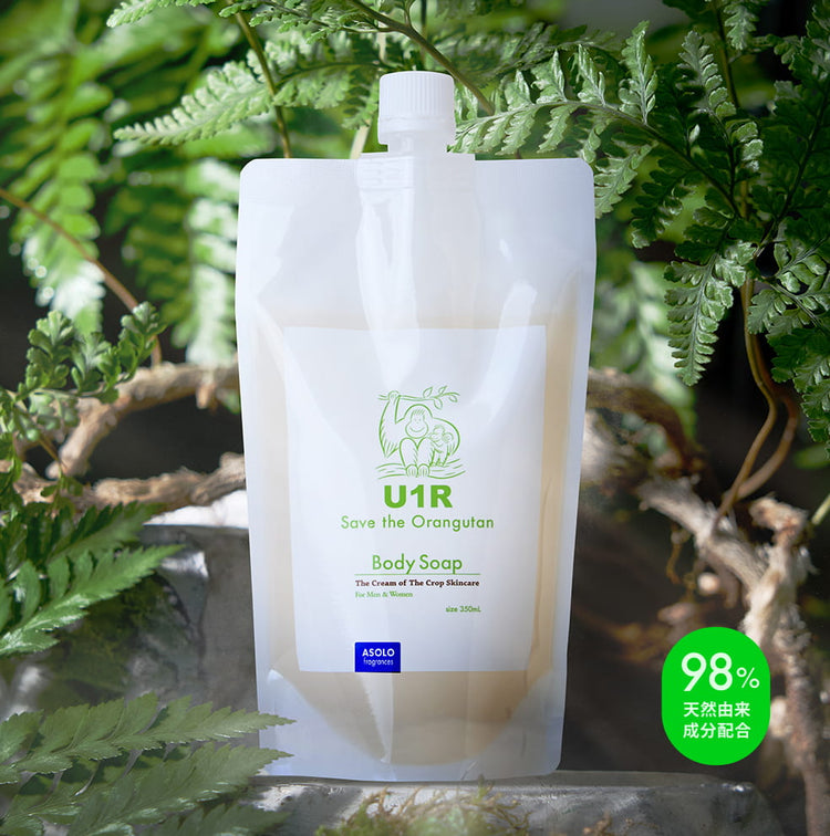 世界で最も使われる「パーム油」の生産では、オラウータンが生息している森林を伐採するなど環境破壊が問題視されています。U1Rでは、毎日使うものなら「環境にやさしい選択を」という考えのもと、オラウータンとその森を守るべくパーム油を使わない商品をお届けします。